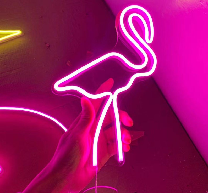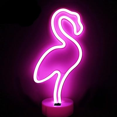 Neon sign with holder base decor light pink flamingo night lamp battery and usb operated for xmas birthday party kids room gift.